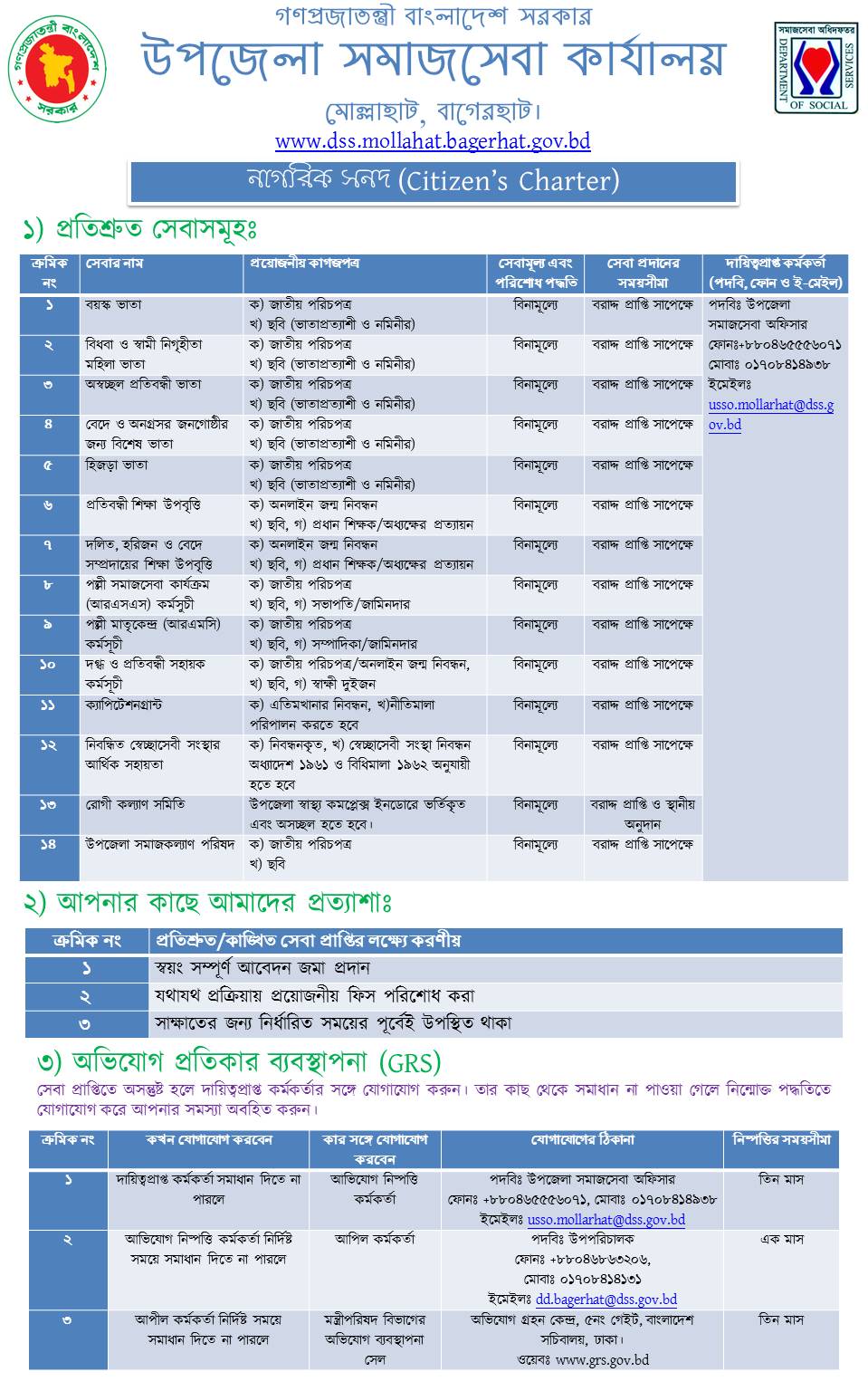 | উপজেলা সমাজসেবা কার্যালয়, মোল্লাহাট, বাগেরহাট। |